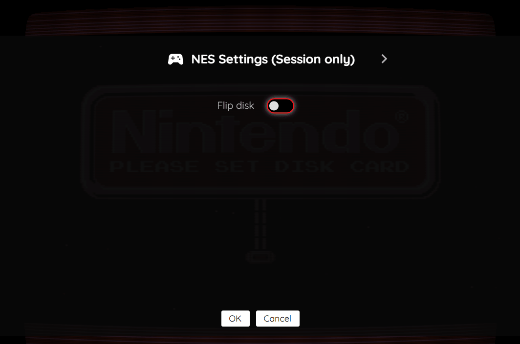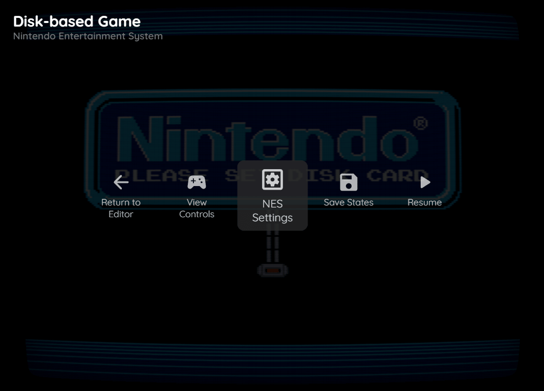 | Flip disk | Flips the currently inserted FDS disk. This is used for FDS games that require flipping the disk to access content on the other side. |