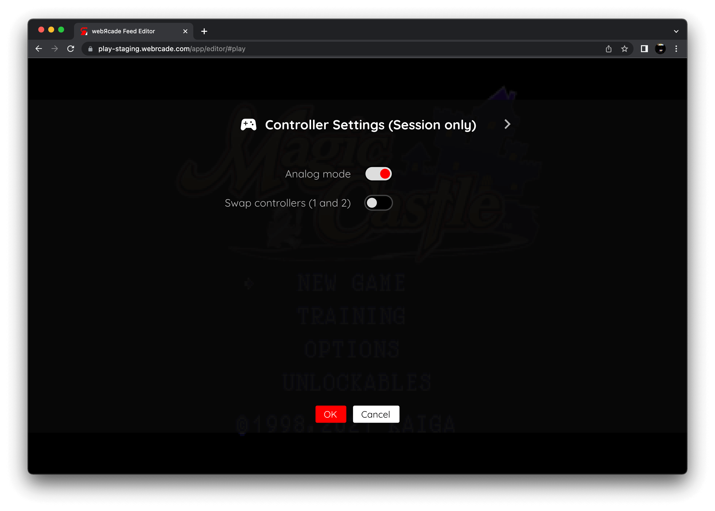 To increase the likelihood of a game with a larger disc size loading, you can optionally choose to launch the game using a standalone-based link (versus launching the game within the webЯcade player or editor). See the Standalone section of this documentation for further information (On Xbox, you would most likely want to bookmark the direct link. On iOS, you would most likely want to add the game to the home screen).