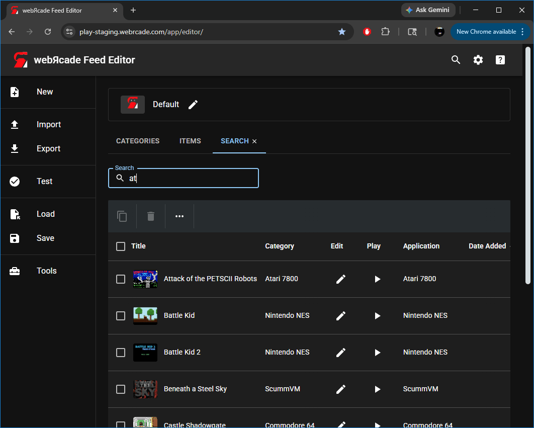The "Feed Search Tab" provides the ability to search for items (games, etc.) across all categories of the active feed.