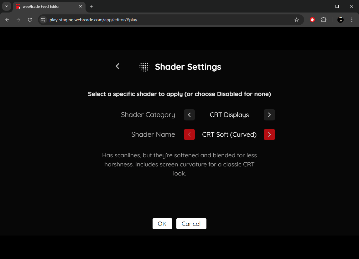 | Experimental apps | Enables whether experimental applications are displayed in the webЯcade player or feed editor. Applications are typically designated as experimental based on high resource requirements or due to instability and defects. |